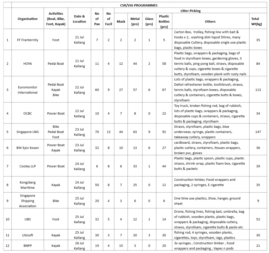 We also had a fruitful week for CSR, with a back-to-back 12 sessions of CSR! This week, just for CSR alone, we picked up 635kg of trash, across 300+ participants! Not the cleanest result, but this is definitely an impact we are making towards our waterways.