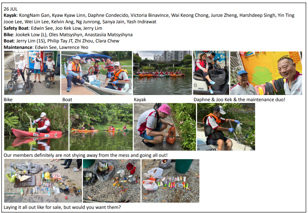 It was an exciting week for our members, this week was one of the few opportunities where we had kayak patrols for all 3 locations so close to one another – Kallang last week, Punggol and Lakeside this week! We also had an excellent turnout for each session. Kudos to all the patrol leaders who took time out of their schedules to lead the expeditions, and to all other members for coming down to help!