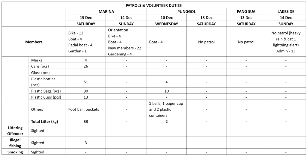 • 3 Boat patrol – 2 Marina, 1 Punggol