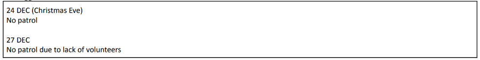 It is Christmas week and the last cleanup programme of the year was conducted at the start of the week on 23rd December! Members patrol was still on with 48 members present.