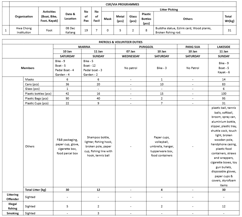 Waterways Watch Society would also like to highlight the many observations and engagements done with members of the public (young and old) on the need to comply with our rules. Rules like No Fishing, No Littering, No Smoking, No Cycling, No PMDs and PABs. The disregard of such rules by still many Singaporeans and Foreigners is of real concern. What type of society are we encouraging when our citizens simply cannot or do not want to comply with rules and guidelines?? What is the future of Our Singapore??
