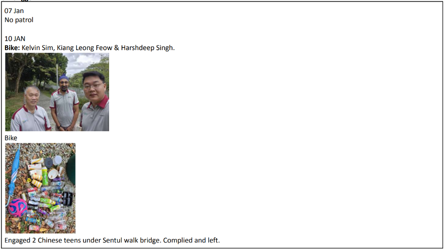 - 4 Bike patrol – 2 Marina, 1 Punggol, 1 Lakeside